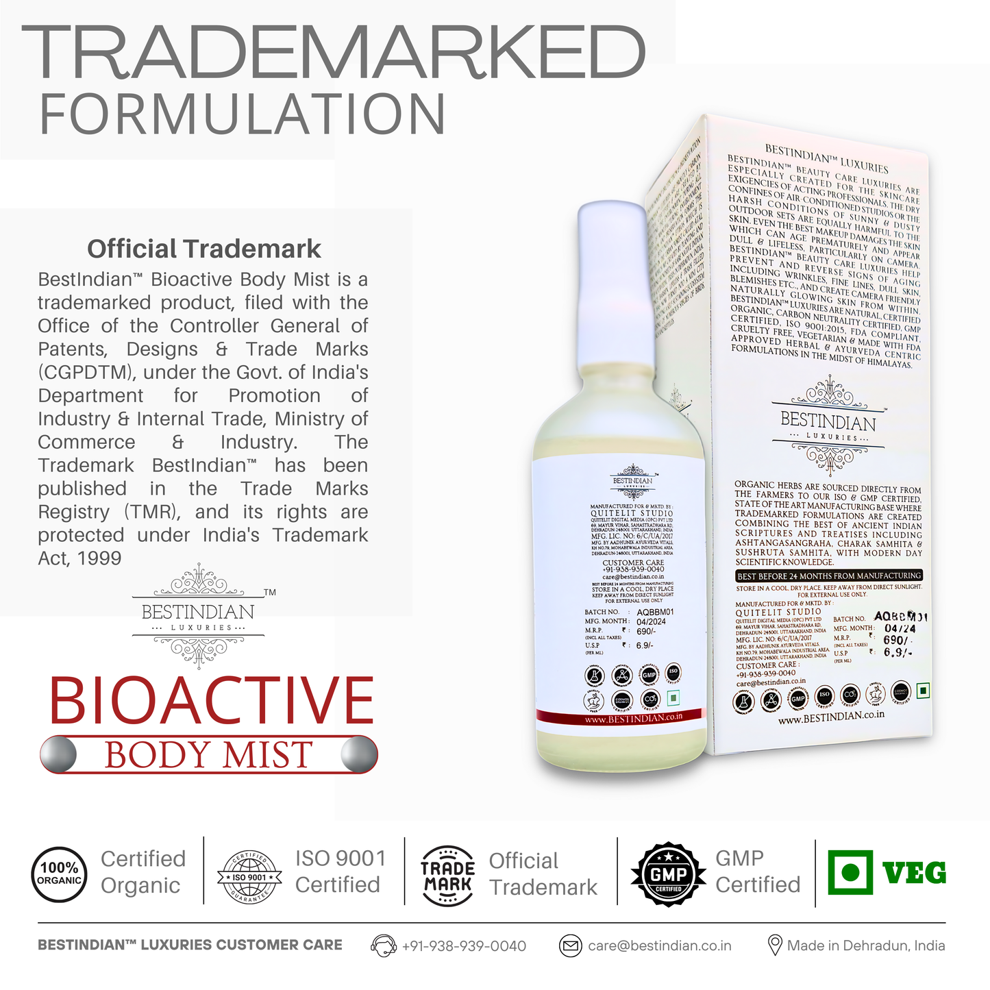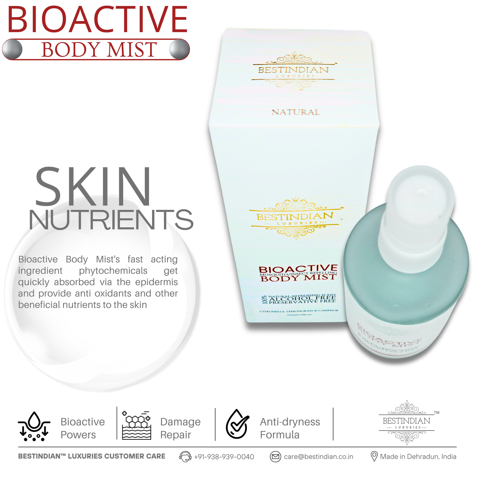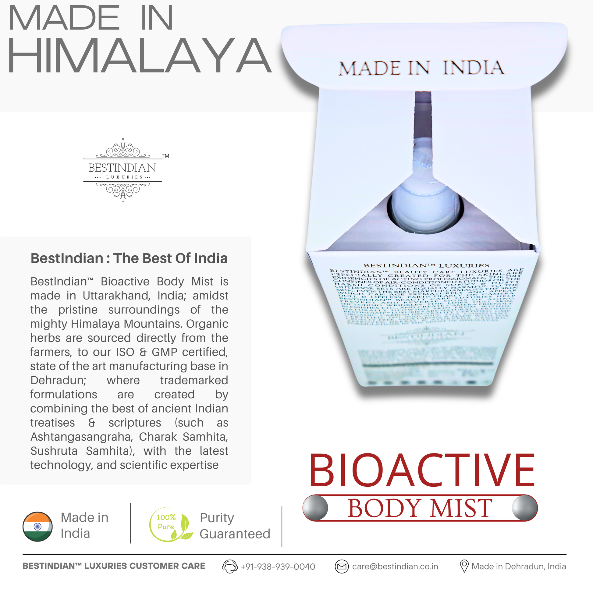 Tired of chemical mosquito repellents with harsh smells and sticky residue? BestIndian™ BioActive Body Mist is crafted as a luxurious, DEET free alternative, powered by Citronella, Lemongrass, and Camphor. These natural botanicals are known for their refreshing fragrance and traditional use in repelling insects, while their bioactive compounds help your skin feel fresh and comfortable.